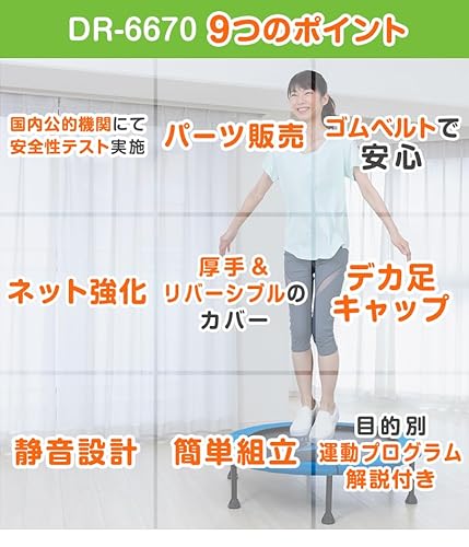 ひとつだけ注意点。トランポリンでジャンプした勢いで飛び出すことがあるので、周りに危ないもの(角の立った家具など)はなるべく置かない方がいいです。